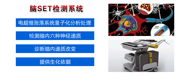 脑SET检测系统是一种揭示脑电层层次信息的新型检测仪器,通过对患者电超慢涨落系统量子化分析处理,可同时检测出脑内六种神经递质的正常或病理状态,从而为诊断脑内递质改变有关的各类神经疾病提供生化依据。