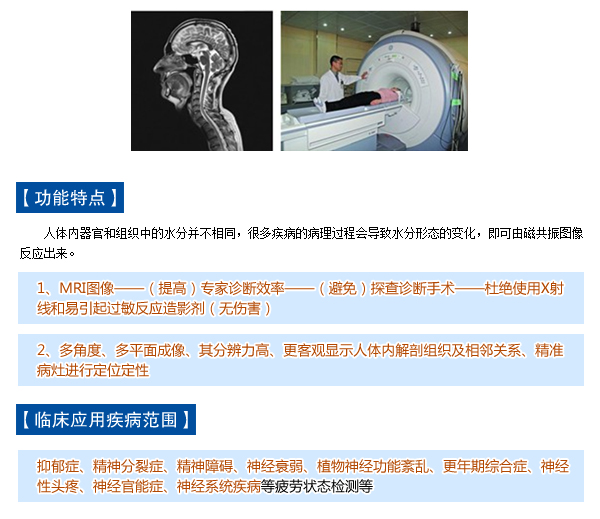 MRI所获得的图像非常清晰精细,大大提高了医生的诊断效率,避免了探查诊断的手术。由于MRI不使用对人体有害的X射线和易引起过敏反应的造影剂,因此对人体没有损害。MRI可对人体各部位多角度、多平面成像,其分辨力高,能更客观更具体地显示人体内的解剖组织及相邻关系,对病灶能更好地进行定位定性。