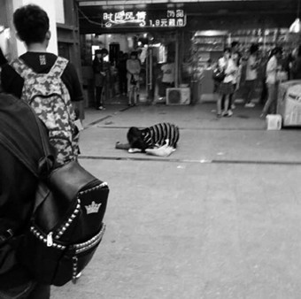 顺着商业街往里走,记者来到这家宾馆。宾馆在一栋5层楼里边,其中一二层是商业街,主要经营小商品,三四层分布着多家宾馆。在二层一家鞋店门口3米远的地方,记者看到了一摊已经凝固的血迹。