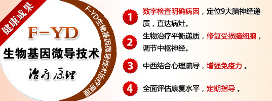 RBF神经系统修复技术通过在微导技术的指导下将特殊的生物基因导入相应的神经组织部位,控制神经递质分泌,调节各种递质的动态平衡。同时,持续营养脑神经细胞,对受损脑细胞进行修复,恢复脑细胞正常功能,促进神经递质受体之间的结合。辅助仪器治疗和中医治疗,促使兴奋与抑制的有序更替;改善脑部血液循环环境,提高脑部血液含氧量,纠正紊乱的大脑功能,最终达到临床治愈的目的。