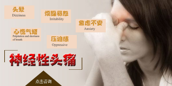 神经性头痛主要是指紧张性头痛、功能性头痛及血管神经性头痛,多由精神紧张、生气引起,主要症状为持续性的头部闷痛、压迫感、沉重感。神经衰弱性头痛多见于脑力劳动者,他们往往废寝忘食、夜以继日地工作,缺乏锻炼、营养不足、过度疲劳而致大脑不支。患者常有头涨、失眠、记忆力下降表现,并且有未老先衰之感。